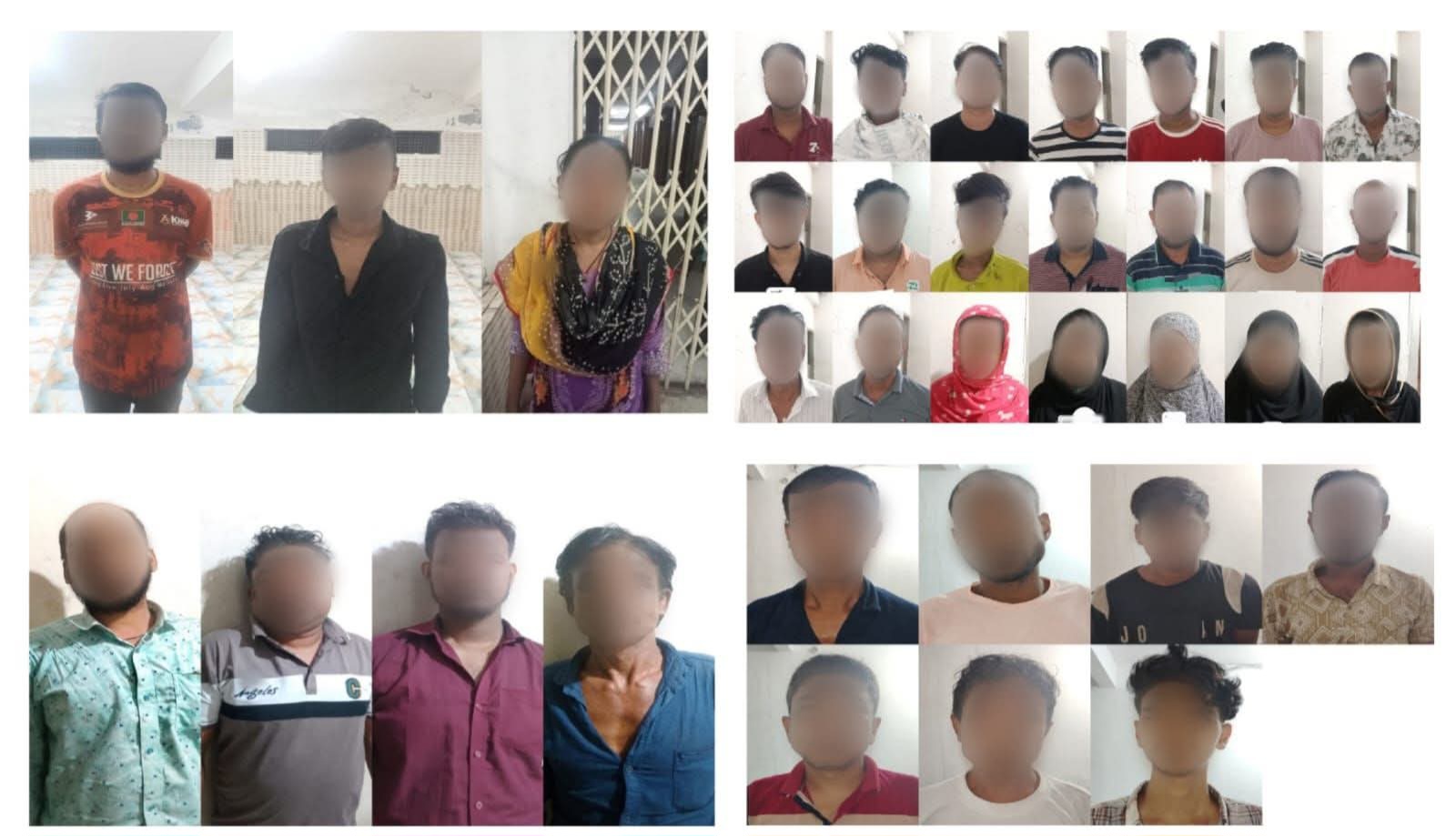 শেরেবাংলা নগর থানা সূত্রে জানা যায়, বুধবার (২০ আগস্ট ২০২৫) দিনব্যাপী বিশেষ অভিযান পরিচালনা করে অত্র থানা এলাকার বিভিন্ন স্থান হতে ২১ জনকে গ্রেফতার করা হয়। গ্রেফতারকৃতরা হলো- ১। অমিত বৈদ্য (২৯) ২। সুজন (২৮) ৩। সবুজ (৩২) ৪। রিপন (২৬) ৫। আনিস (৩৫) ৬। নাঈম (২১) ৭। রাকিব (২২) ৮। আলমগির (২৮) ৯। টিটন ওরফে লিটন (২৮) ১০। হাবিব (৩০) ১১। আবুল খায়ের (৫২) ১২। শাওন (৪০) ১৩। দিদার হোসেন শান্ত (২৬) ১৪। সাগর (২২) ১৫। সজীব (২০) ১৬। নুরুল (৪৩) ১৭। মীম (২৬) ১৮। সুমি (২৬) ১৯। আকলিমা (২৮) ২০। নিপা (২০) ও ২১। দিপা (২০)।