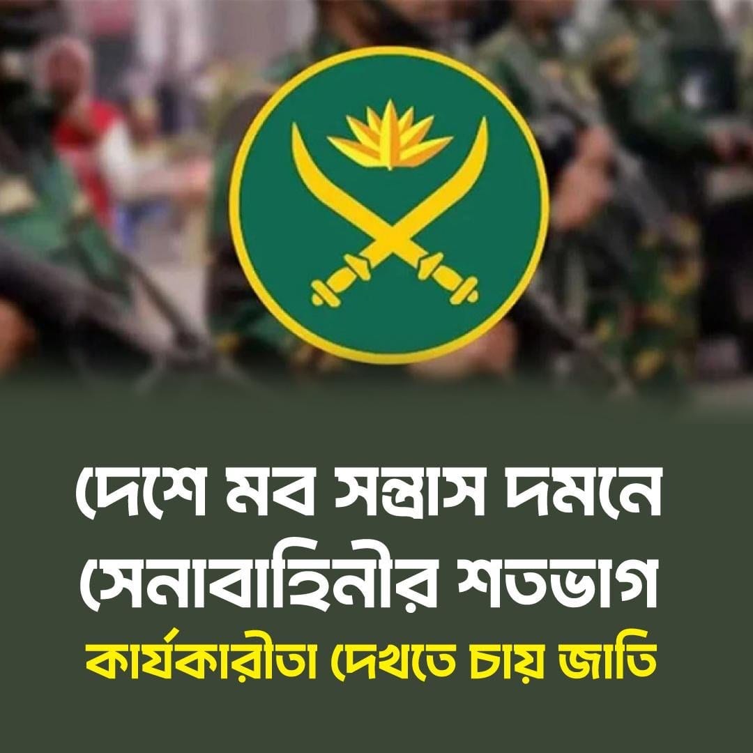 দেশে মব সন্ত্রাস দমনে সেনাবাহিনীর শতভাগ কার্যকারীতা দেখতে চায় জাতি