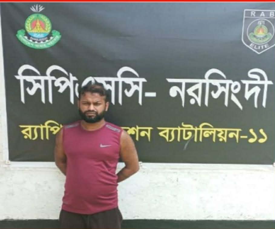 নরসিংদীর শিবপুরে র্যাব-১১ এর অভিযানে ‘শুটার সানি’ গ্রেপ্তার