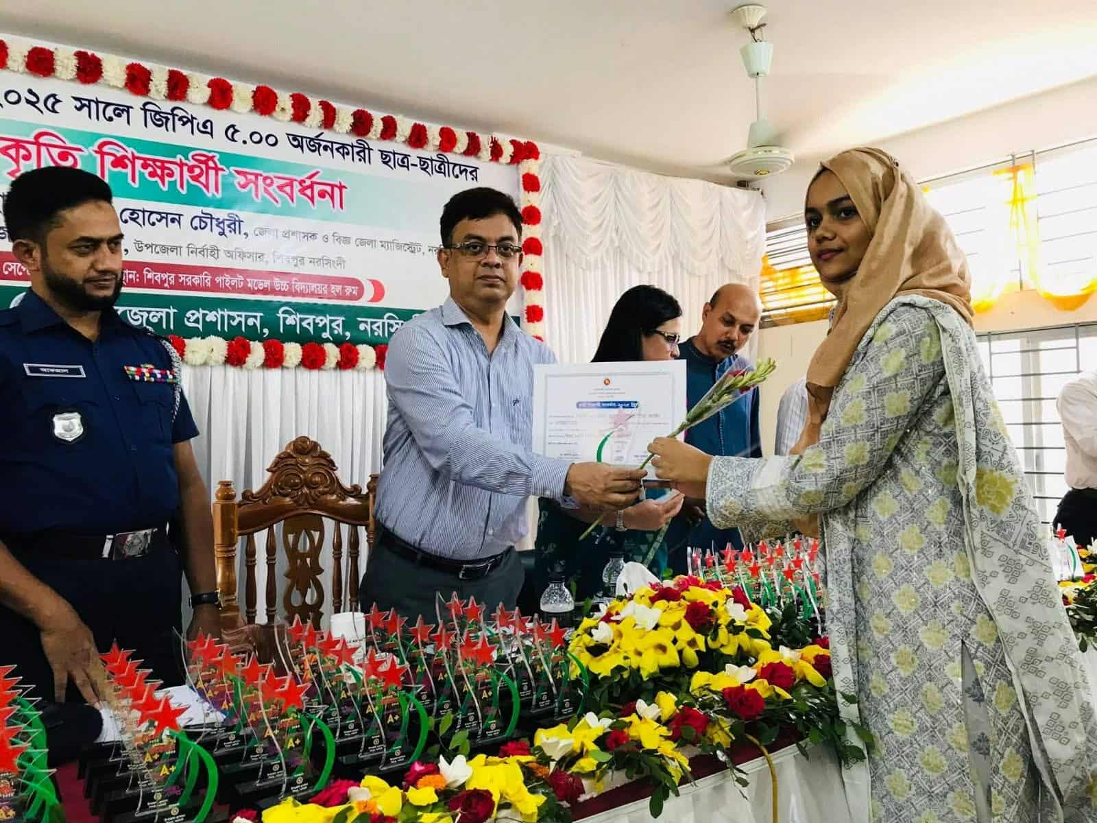 নরসিংদীর শিবপুর উপজেলা প্রশাসনের আয়োজনে ২০২৫ সালে উপজেলায় জিপিএ- ৫.০০ অর্জনকারী কৃতি শিক্ষার্থীদের সংবর্ধনা দেওয়া হয়েছে। রবিবার ( ০৭ সেপ্টেম্বর) দুপুরে শিবপুর সরকারি পাইলট মডেল উচ্চ বিদ্যালয় হল রুমে এই সংবর্ধনা অনুষ্ঠান অনুষ্ঠিত হয়।