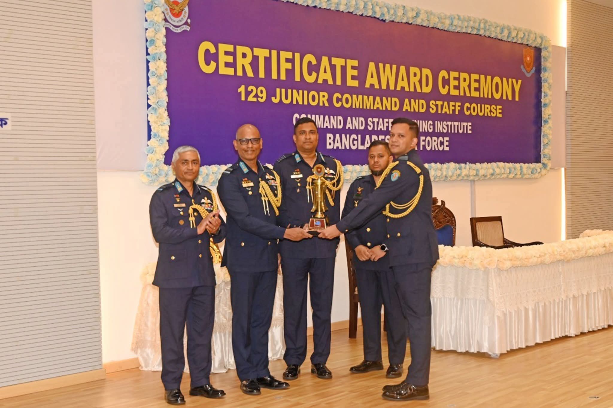 বাংলাদেশ বিমান বাহিনীর ১২৯ তম জুনিয়র কমান্ড ও স্টাফ কোর্সের সনদপত্র বিতরণ অনুষ্ঠান