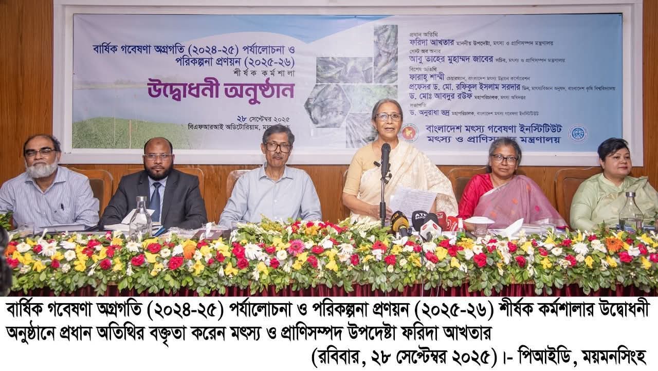 উপদেষ্টা ২৮ সেপ্টেম্বর রবিবার সকালে বাংলাদেশ মৎস্য গবেষণা ইনস্টিটিউট (বিএফআরআই)-এর অডিটোরিয়ামে আয়োজিত “বার্ষিক গবেষণা অগ্রগতি (২০২৪-২৫) পর্যালোচনা এবং পরিকল্পনা প্রণয়ন (২০২৫-২৬)” শীর্ষক কর্মশালায় এসব কথা বলেন।