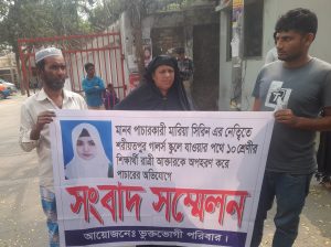 কিন্তুক আমার মেয়েকে উদ্ধার করার কোন পরিকল্পনা চলছে না পুলিশ প্রশাসন টাকার বিনিময় আমার মেয়েকে উদ্ধার করা সম্ভব হয়নি তাই আমি ঢাকা প্রেসক্লাবে আসি আমার মেয়ে উদ্ধার করার জন্য আকুল আবেদন জানিয়েছি।