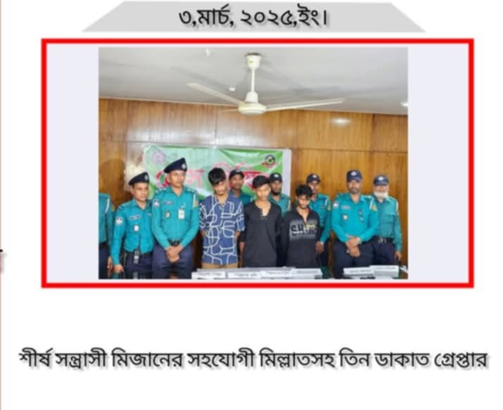 স্টাফ রিপোর্টার:চট্টগ্রামের বায়েজিদে শীর্ষ সন্ত্রাসী মিজানের সহযোগী মিল্লাত সহ তিন ডাকাতকে গ্রেপ্তার করেছে পুলিশ।
