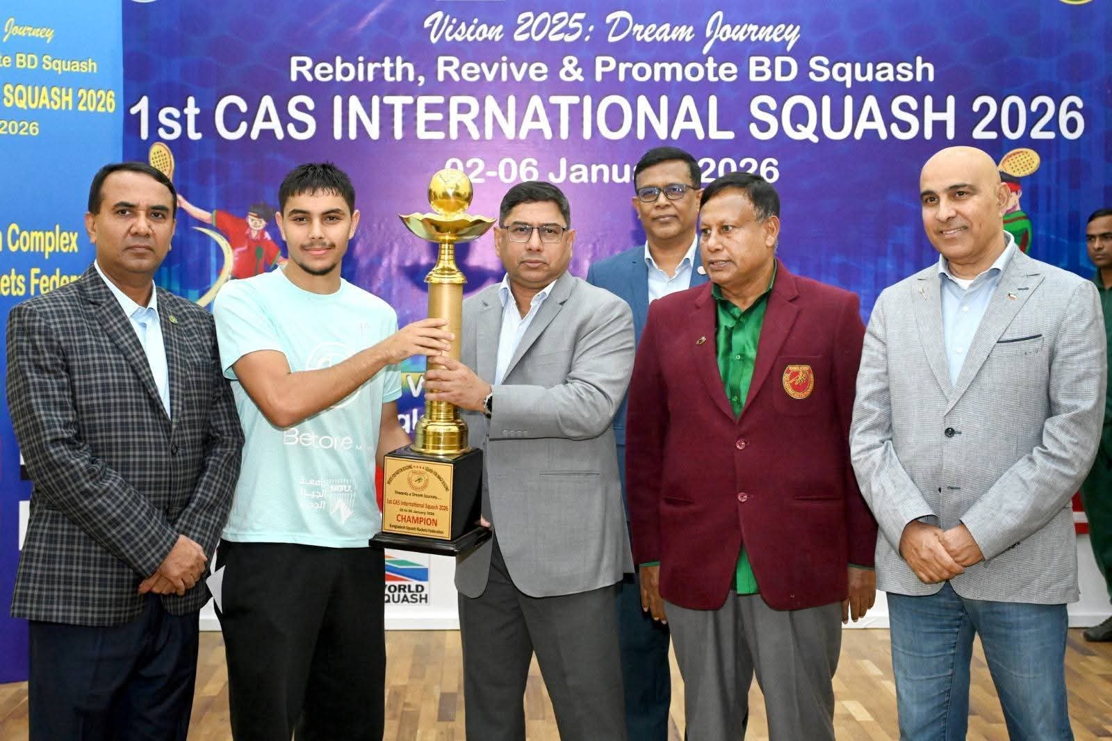 প্রথম বাংলা : : ঢাকা সেনানিবাসস্থ আর্মি স্কোয়াশ কমপ্লেক্সে আজ (০৬ জানুয়ারি ২০২৬ তারিখ) পাঁচ দিনব্যাপী '১ম সিএএস আন্তর্জাতিক স্কোয়াশ প্রতিযোগিতা-২০২৬' এর সমাপনী ও পুরস্কার বিতরণী অনুষ্ঠান অনুষ্ঠিত হয়।